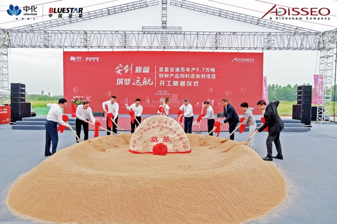 8月31日,藍(lán)星安迪蘇3.7萬噸/年特種產(chǎn)品飼料添加劑項(xiàng)目(以下簡稱FOSIC項(xiàng)目)開工奠基儀式在位于南京溧水區(qū)的南京國家農(nóng)業(yè)高新技術(shù)產(chǎn)業(yè)示范區(qū)舉行。中國中化副總經(jīng)理、黨組成員陽世昊,南京市委副書記、南京國家農(nóng)高區(qū)黨工委(籌)書記沈文祖等出席儀式并致辭。